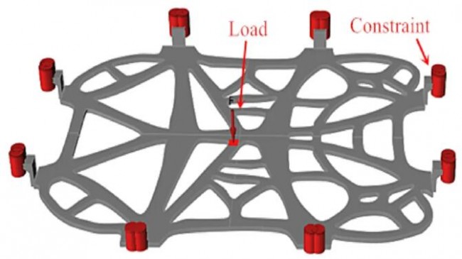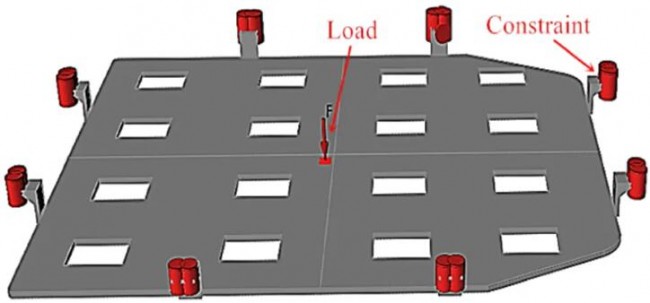 ▲電動(dòng)汽車電池拓?fù)鋬?yōu)化托盤的負(fù)載和約束位置