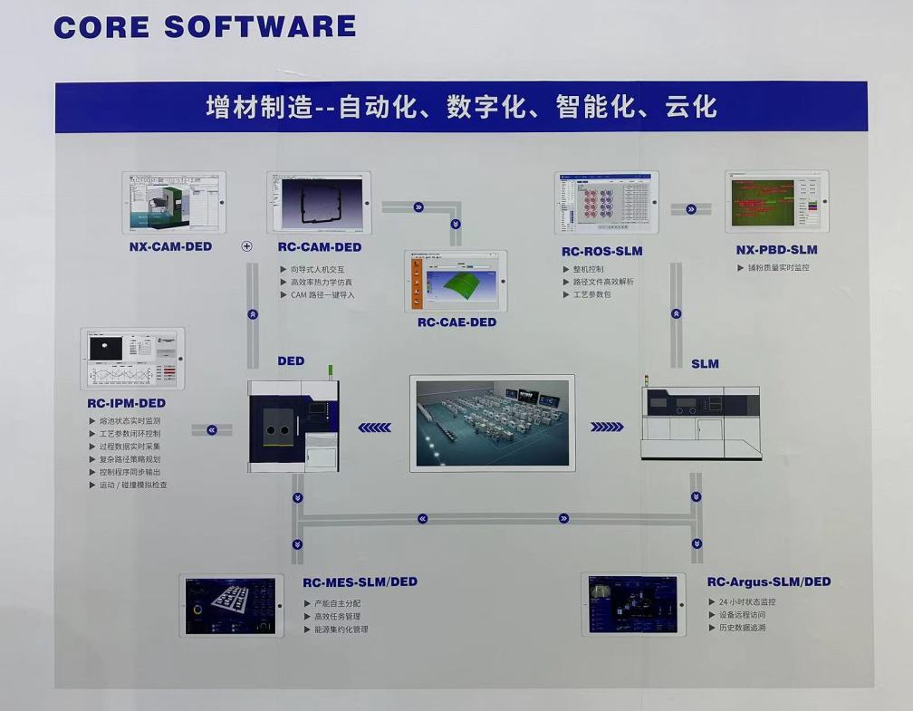除了工藝展品之外,煜宸展位還展出了“軟件全家桶”,一系列智能化控制軟件,為實(shí)現(xiàn)金屬增材制造過(guò)程“智能識(shí)別、預(yù)置處理、遠(yuǎn)程控制、人工輔助”的智能化工廠(chǎng)級(jí)品質(zhì)控制模式提供必要的保障。