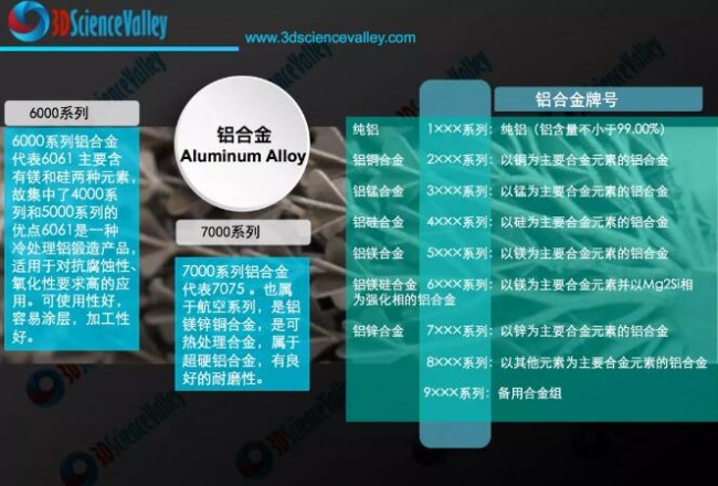 雖然比鈦合金更弱,但鋁合金具有良好的強度重量比,是一種常見的(和成熟的)航空航天材料選擇。根據(jù)3D科學(xué)谷的了解,增材制造零件生產(chǎn)中使用的鋁合金包括基于合金元素的 1xxx、2xxx、4xxx、6xxx、7xxx 系列,其中許多是使用固態(tài)增材制造工藝制造的,可用于 AFS-D 和 UAM 工藝來加工。
